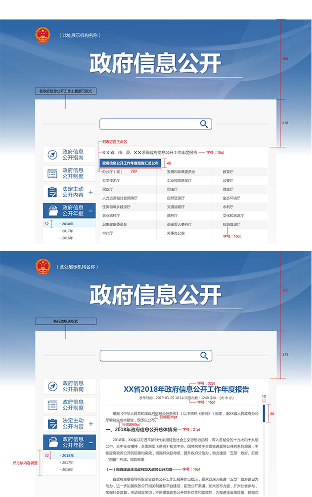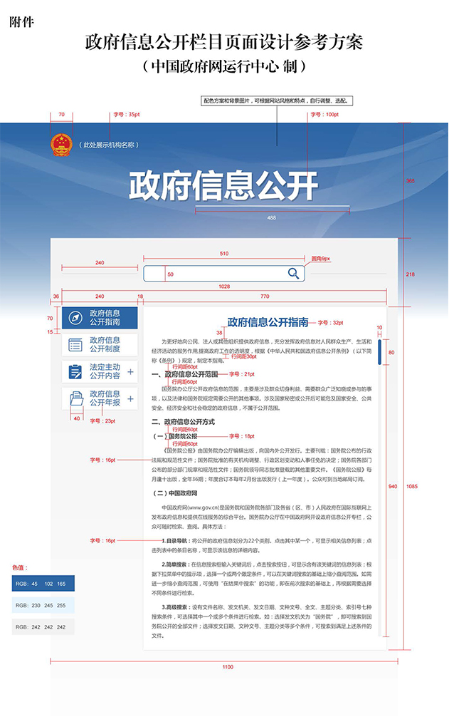 中国政府网运行中心根据上述要求设计了“政府信息公开栏目页面设计参考方案”,供参考使用。