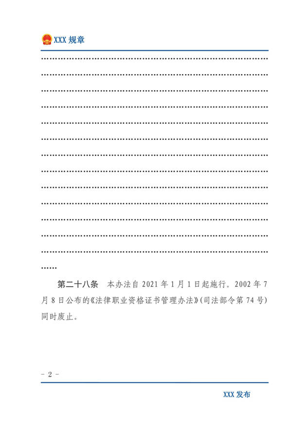 一、规章制定或修改时,按照《规章制定程序条例》规定,由主要负责人签署命令予以公布。规章集中公开时,只公开标题、题注和正文,不重复公开负责人签署的命令。题注应当包含公布时间及文号、修订时间及文号、施行时间等标识性信息,具体请参照中国政府法制信息网(司法部网站)“行政法规库”的题注格式。