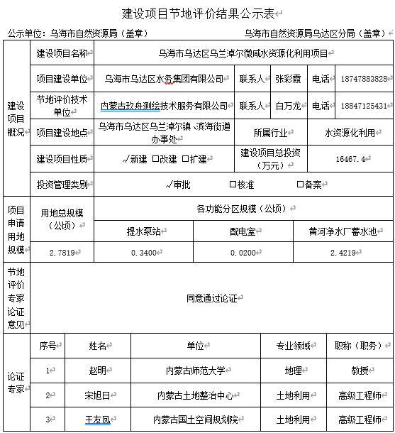 365-002 bet_约彩365官方下载安装_365705乌达区乌兰淖尔微咸水资源化利用项目建设项目节地评价结果公示